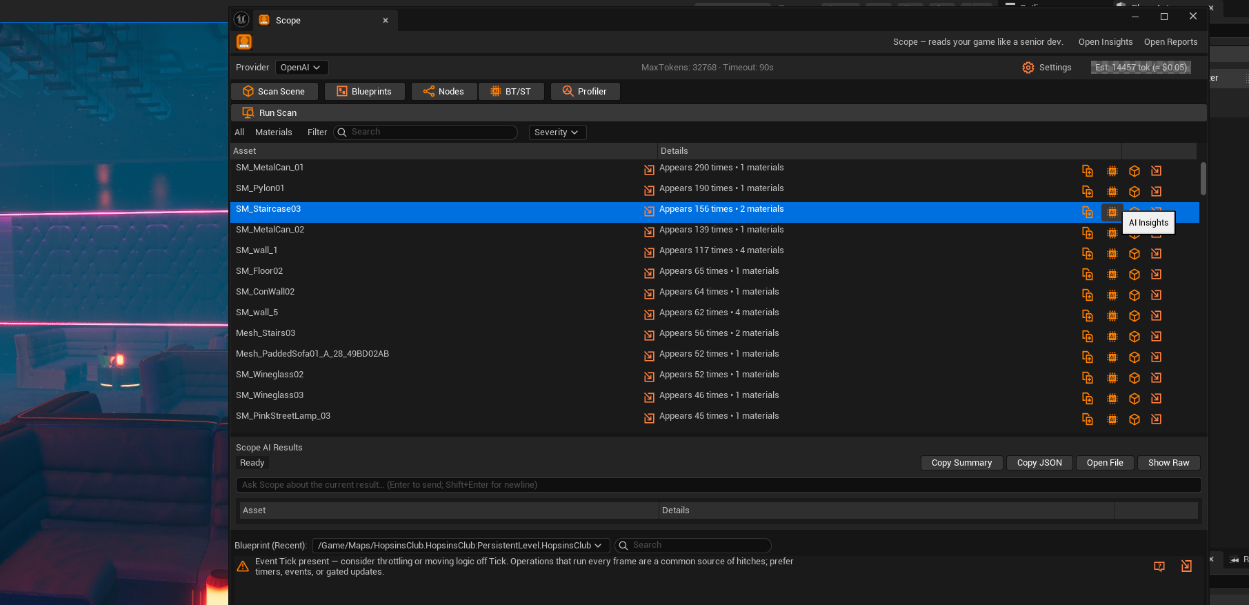 Developer intelligence for Unreal. Scope assembles the Rosetta Stone context – project intent, profiler traces, Blueprint/BT structure – and leads teams directly to the fix.